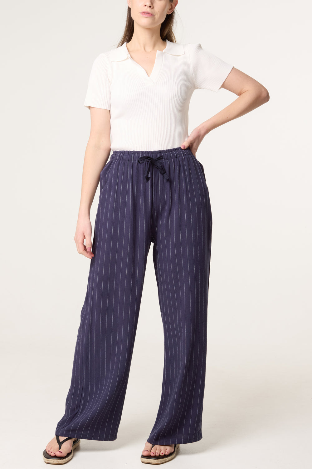 Lucy navy pinstripe relaxed trousers