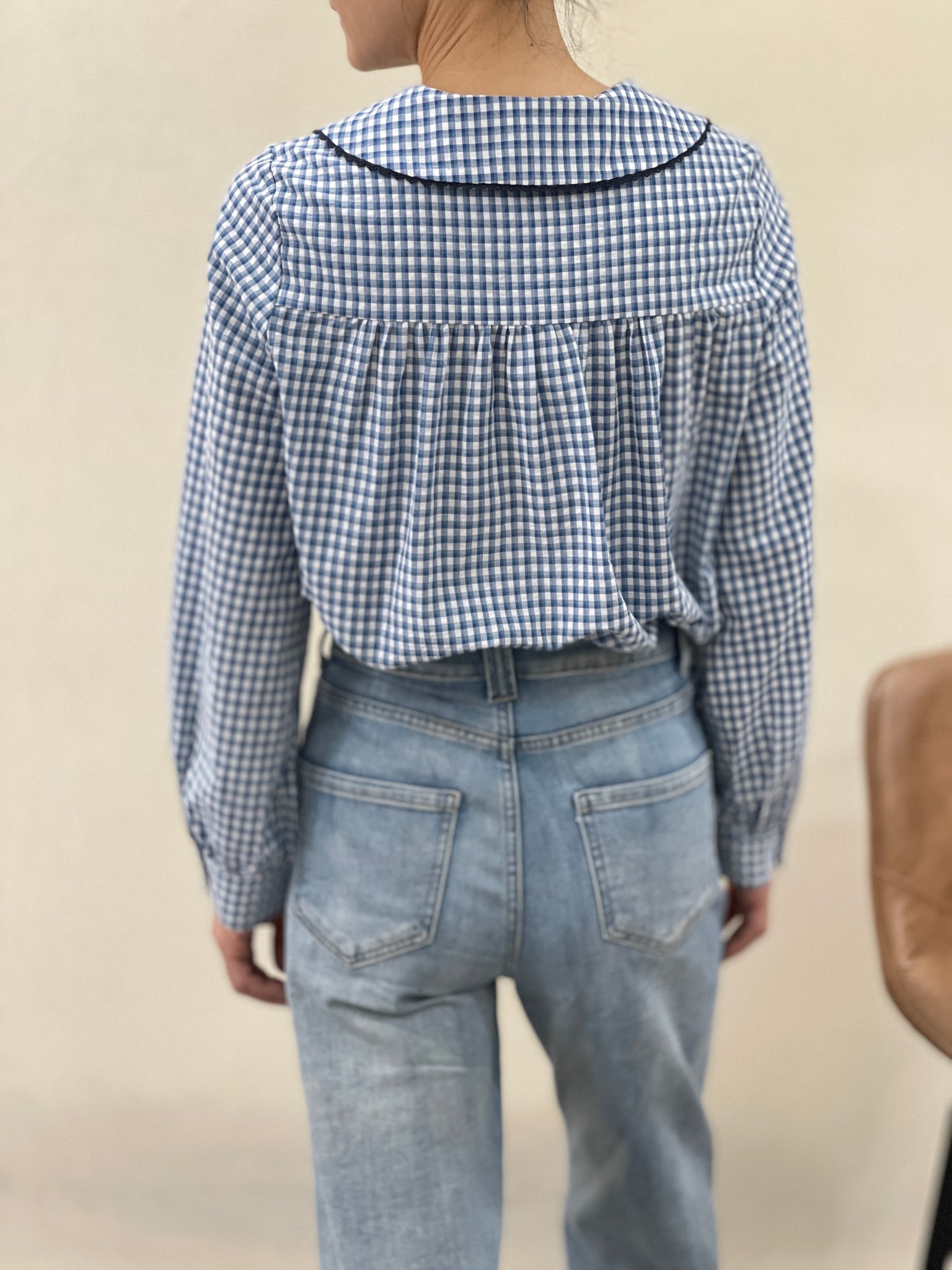 Fifi gingham floral collar shirt